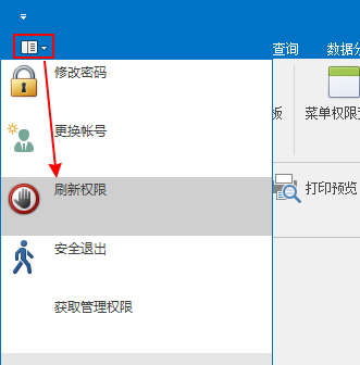 16、完成菜单定制后点击左上方下拉小三角,在下拉选项中点击【刷新权限】。