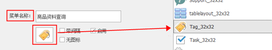 4、输入菜单名称(如:商品资料查询)→右侧图标栏可自由选择图标。